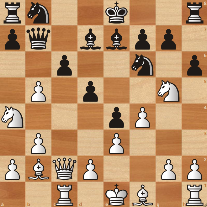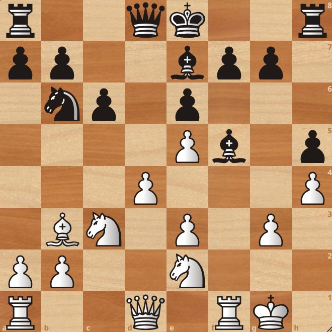 Kolejny przykład pokazujący, że w szachach aktywność figur często jest ważniejsza niż materiał. Białe zignorowały fakt, że skoczek na g5 jest zaatakowany i zagrały 14. Sc5! G:c5 15. H:c5 h:g5 16. f:g5 Sg4 17. Ga3 Ge6 18. b:c6. W zamian za figurę miały już w tym momencie trzy pionki (w tym bardzo silnego pionka na c6) oraz bardzo dużą aktywność figur. W 33. posunięciu partia zakończyła się wygraną białych.
