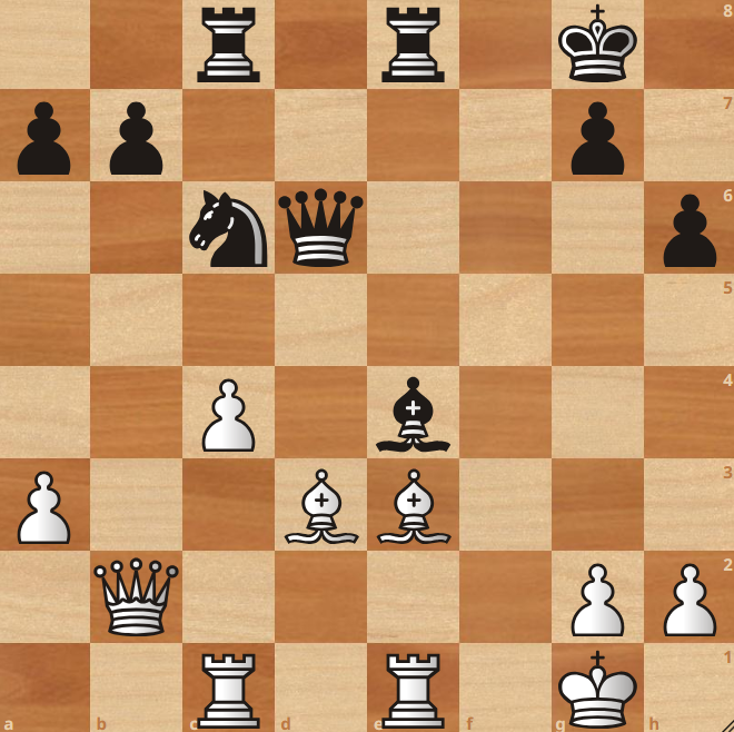 Reprezentant Polski zagrał tutaj 22. … He6?, po czym jego przeciwnik odpowiedział 23. He2? i partia toczyła się dalej, a ostatecznie zakończyła się remisem. Zamiast tego białe mogły wykonać uderzenie taktyczne 23. G:d5! i po 23. … H:d5 24. Hg4+ wykorzystałyby niebronioną pozycję wieży na c8. Po dalszym 24. … Hg5 25. H:c8 S:e3 26. Hh3! (broniąc przed matem na g2) S:f1 27. H:c3 przewaga materialna zostałaby utrzymana.
